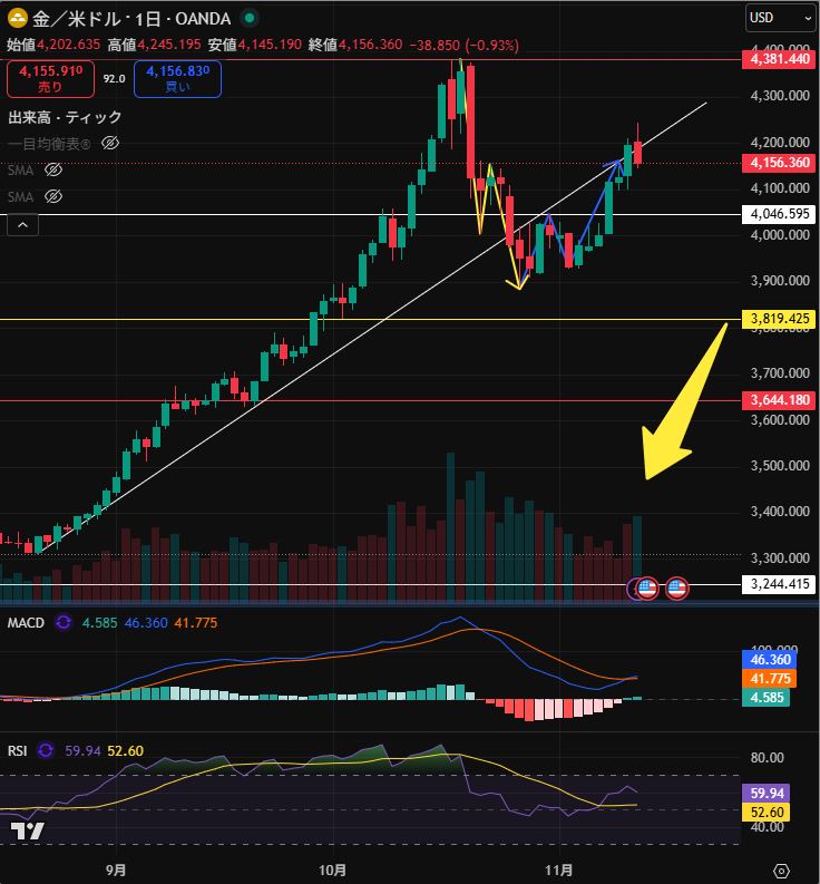 かもナスの錬金術レポート【金(ゴールド)踏ん張れるか?】【2025年11月13日】