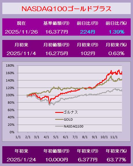 今回は、たまたまですが、副業:ゴルプラと小遣い:ゴルナスが同じ25日に売却指示することになったので、この26日の基準価額で双方約定していると思います。