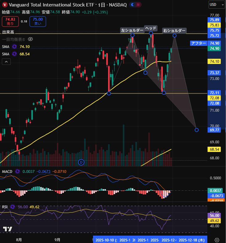 VXUS(全世界株式 除く米国)も史上最高値の更新に向けて着々と上昇中です。