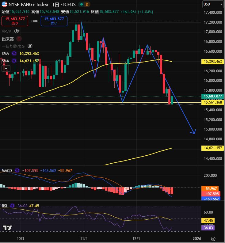 かもナスの錬金術レポート【FANG+週足の下落トレンド発生】【2025年12月18日】