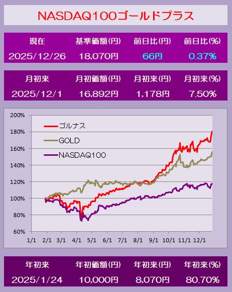 ゴールドプラス・シリーズは着実に上昇していますので、含み益も少しずつ増えていて良好ですね。