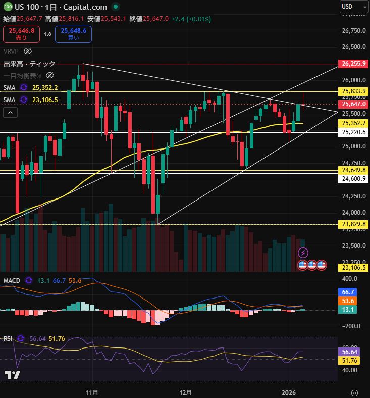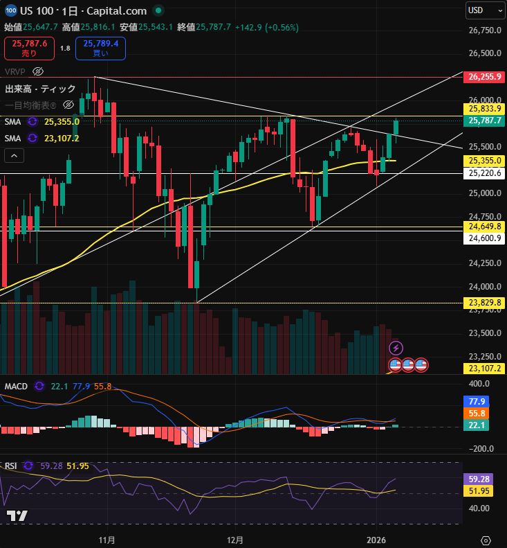 NASDAQ100が、かもナスの予想外の位置で米雇用統計の発表待ちとなりそうです。