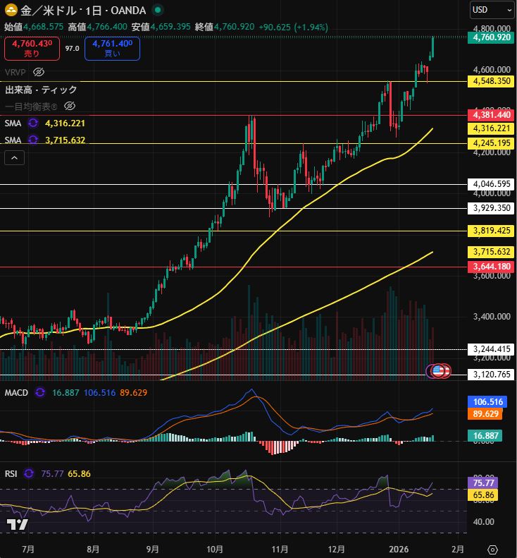 そして、資金は金(ゴールド)に逃避し史上最高値を更新しています。