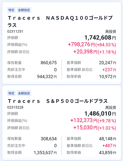 この2つのアプリですが、ゴルプラの取得単価の違いと、保有金額と評価額の微妙なズレ、更には評価損益が10円違っていてめちゃくちゃ気になります(笑)。