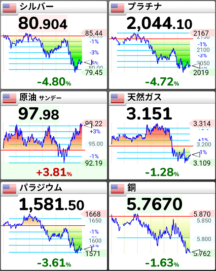 この原油高を受けてリスクオフ、全て売られています。