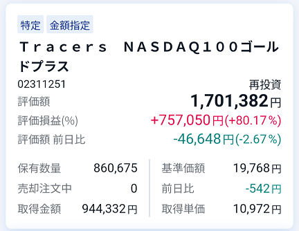 ゴルプラの一部利確でポジションが軽くなりました。