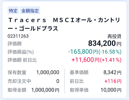 ※小遣い稼ぎ:ゴルナス錬金術は毎月25日、自動売却設定により1万円取崩し(利益確定)を行っています。