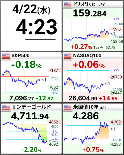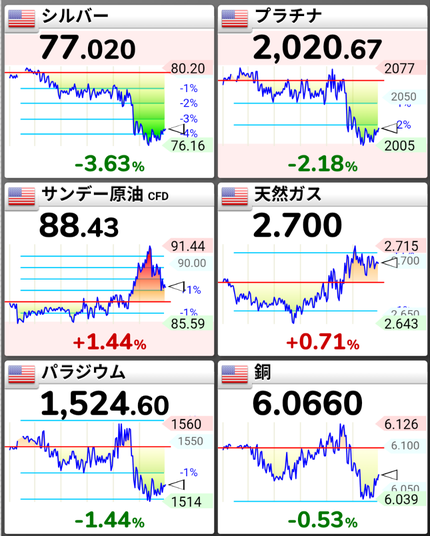 金(ゴールド)と債券が売られ、原油が上昇しています。