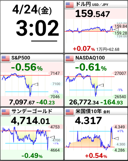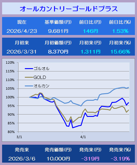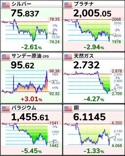 インフレ加速が懸念されるこの状況(金利の上昇あるいは高止まり)では、金(ゴールド)が上昇しづらいので、コモディティや不動産リートあるいは短期債券あたりが手堅い投資かも知れません。