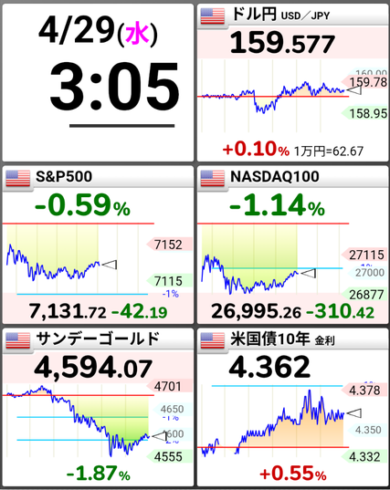 本日米国の引け後は、Microsoft Amazon META Alphabet(Google)、そして明日はAppleの決算発表を控えていますので、どう動くのかに注目です!