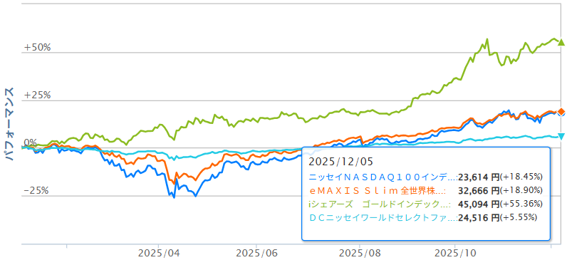新NISA開始以来のチャート(2024年1月1日~2025年12月5日)