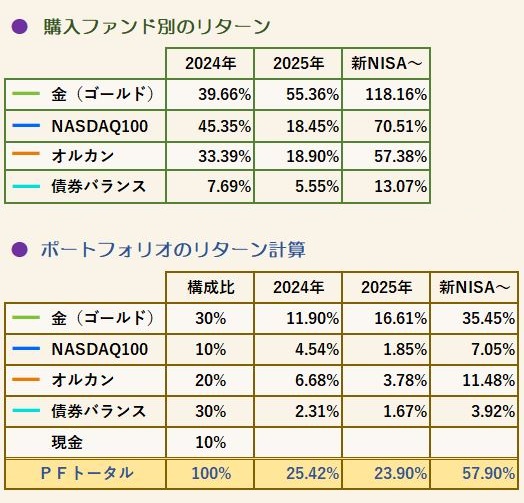 そこで今回は、かもナスが実際に投資しているポートフォリオのパフォーマンスを振り返りつつ現状を確認し、2026年の投資戦略を決めていく様子をお伝えいたします。