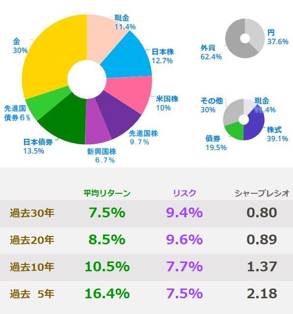 とは言え、かもナスのポートフォリオの期待リターンは年7%想定ですので年20%超えは、超優秀な結果です。