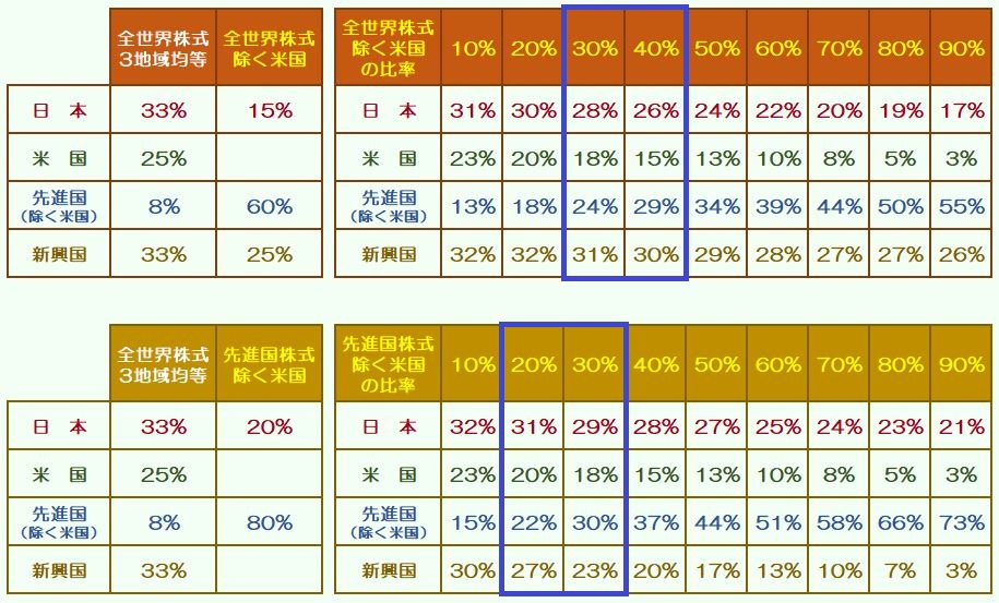 購入比率別の米国株比率一覧