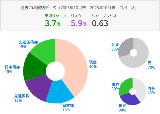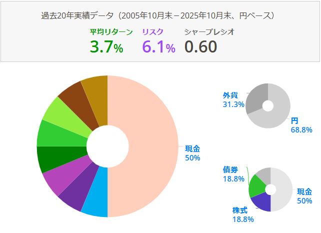 概ね、目標とする3.8%のリターンが得られそうなアセットバランスです。