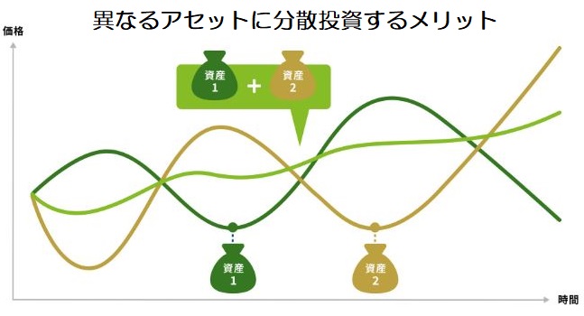 一つのアセット(資産)クラスだと大きく値動きしますが、異なる値動きのアセットを組み合わせると上下の振れ幅が抑えられ資産が安定する傾向があります。