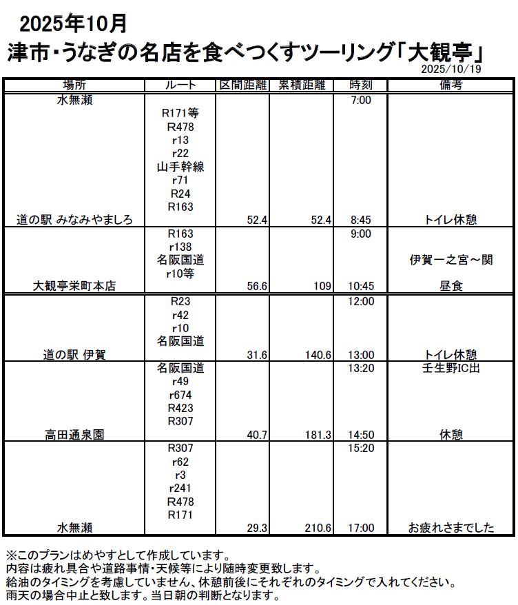 本日のプラン表はこちら