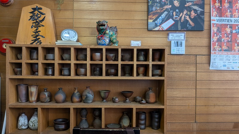 陶器が飾られており、満席では